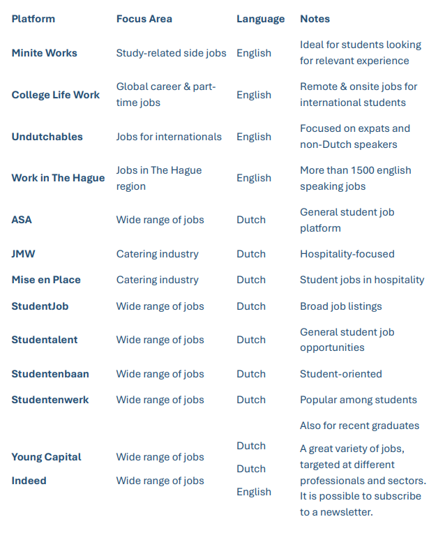 - Check your university or college’s job portal – They may list roles for students, such as student assistant positions. Be aware that many of these jobs may require Dutch.